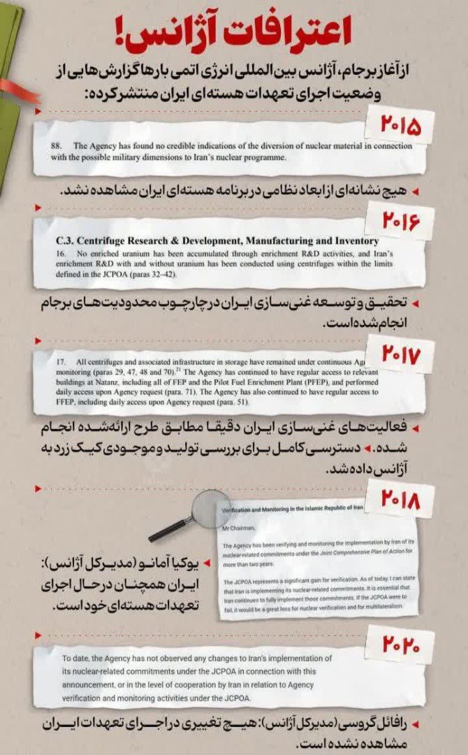 گزارش‌های منتشر شده توسط آژانس بین‌المللی انرژی اتمی از وضعیت اجرای تعهدات هسته‌ای ایران از آغاز برجام تا کنون
