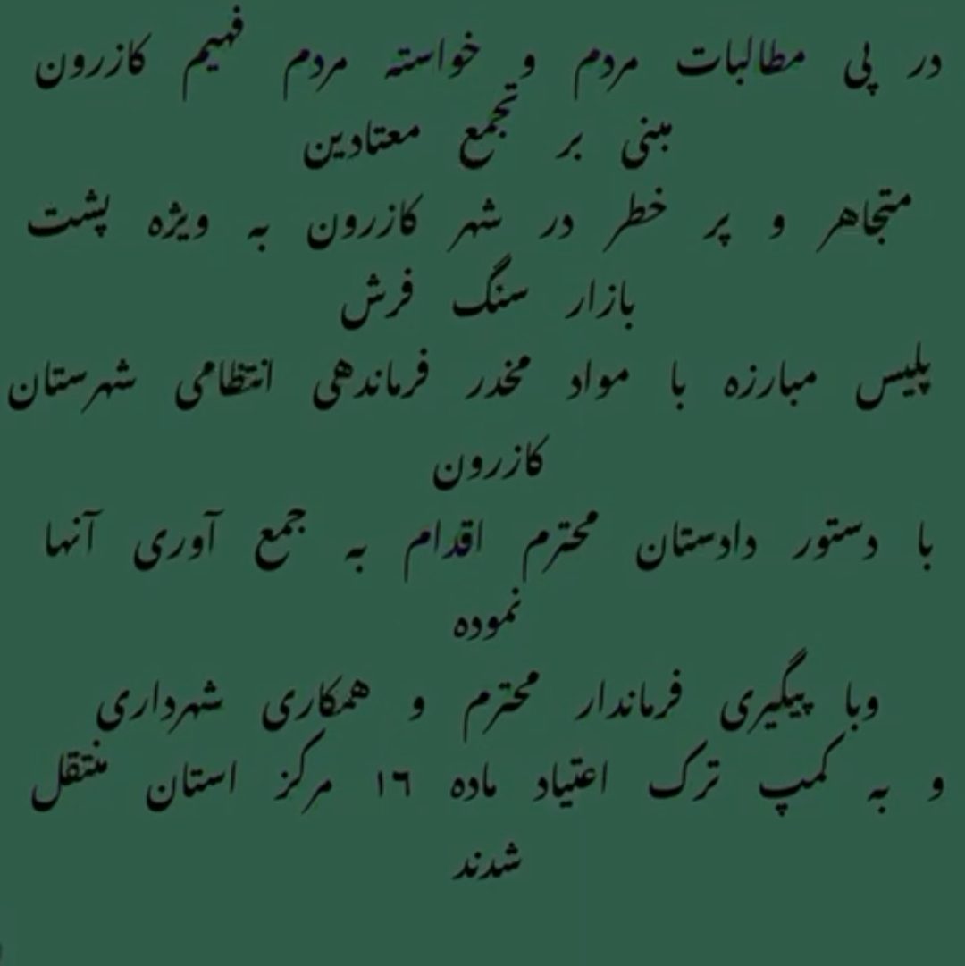 به گزارش کازرون نگاه ،پیرو مطالبات مردمی مبنی بر جمع آوری معتادین در سطح شهر کازرون و با پیگیری پلیس مبارزه با مواد مخدر و دستور قاطع دادستان کازرون ،طرح جمع آوری معتادین متجاوز در سطح شهر کازرون آغاز شد.